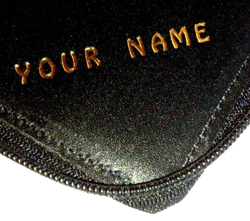 PERSONALISATION: Name, initials etc hot-foil stamped in gold coloured lettering. Be sure to state your choice - up to 10 letters including any spaces and/or punctuation.