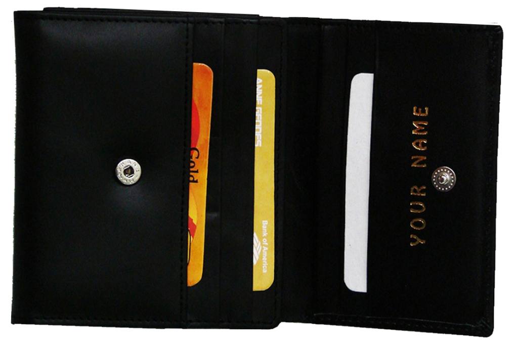 4” X 4¾". (11 X 12.5 cms) when closed. Genuine cow leather. Keyring. 6 credit card slots [will hold up to 4 credit cards each]. 2 other larger slots for business cards, notes, shopping lists, ID etc. 2 gusseted compartments. A zip-up section for coins, stamps etc. A full length compartment for paper currency, cheques etc.